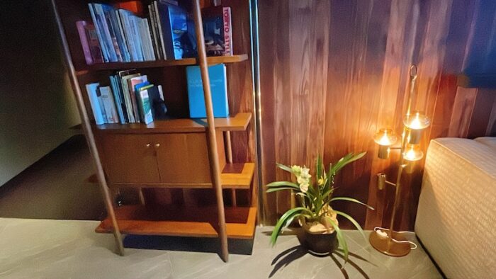ソファでくつろぎながらここにある本や写真集を見たり、おしゃべりしたりするのにぴったり。