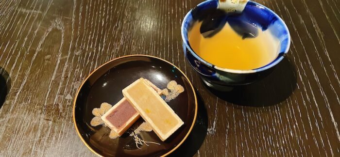 デザートは湘南ゴールドとあずきのモナカです。2つ重ねて食べると味が相まって美味しいのだそうで、スタッフの方にお薦めされました。